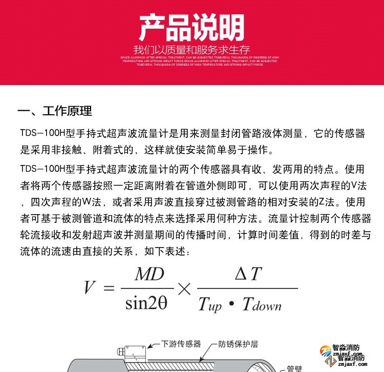 TDS-100H型手持式超聲波流量計是一種外夾、時差式超聲波液體流量計,它采用低電壓多脈沖平衡發(fā)射接收