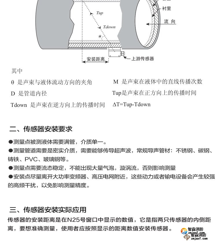 *直管段應(yīng)滿足上游10D,下游5D,距泵出口處30D(D指管徑)。